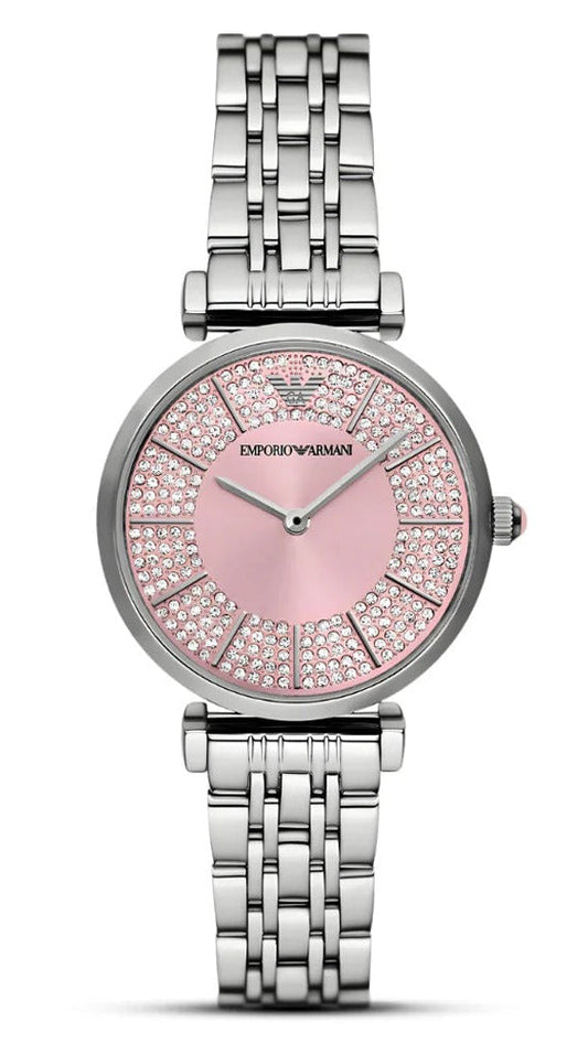 Emporio Armani Gianni T-Bar Pink Dial Silver Steel Strap Watch for Women - AR11686
