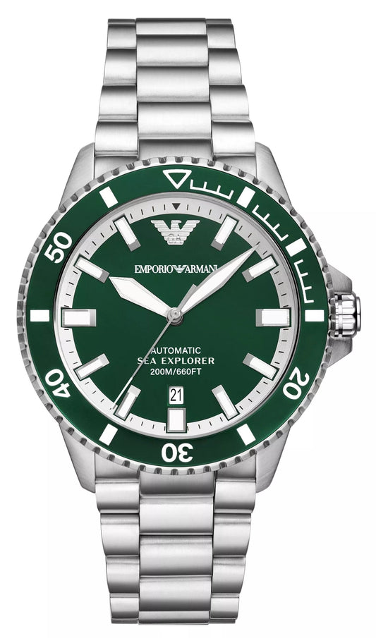 Emporio Armani Sea Explorer Green Dial Silver Steel Strap Watch for Men - AR60088
