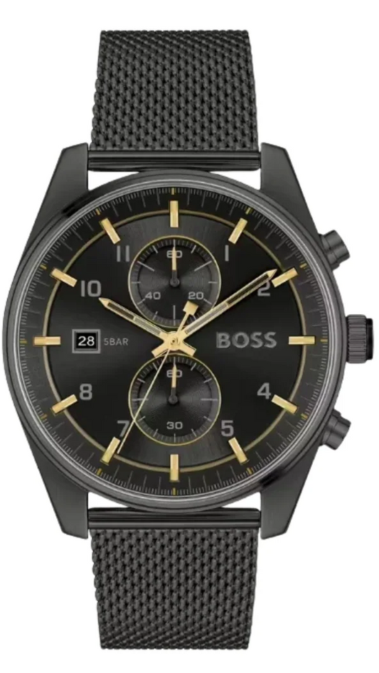 Hugo Boss Skytraveller Chronograph Black Dial Black Mesh Strap Watch for Men - 1514150