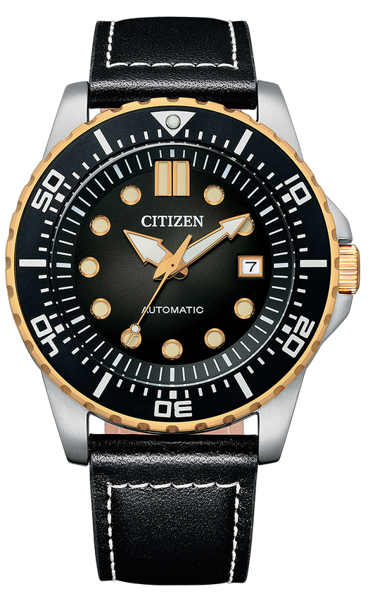 Citizen Mechanical Automatic Black Dial Black Leather Strap Watch for Men - NJ0176-10E