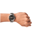 A must-have timepiece for all the watch aficionados, this men analog watch from Armani Exchange will be a perfect pick. Its strap vaunts a silver hue that enhances the look of the watch. Housed in a case, the black round dial is protected by a mineral glass. It showcases plain 3-hand, and a crown for time adjustment. Furthermore, it is complemented with a fold-over push button clasp with safety clasp that ensures a secure fit on the wrist.