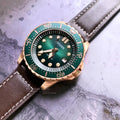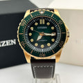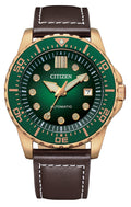 Citizen Mechanical Automatic Green Dial Brown Leather Strap Watch for Men - NJ0173-18X