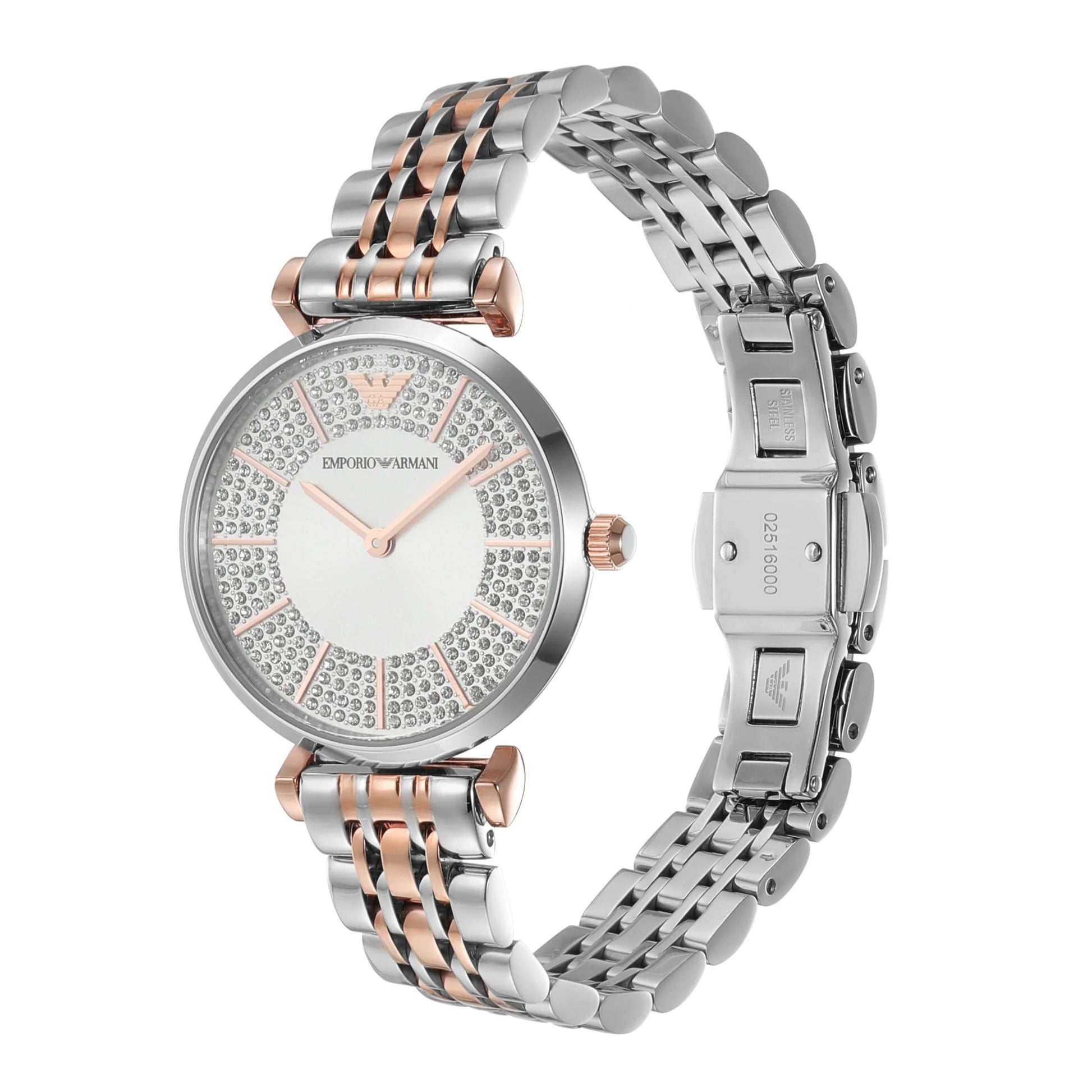 Emporio Armani Gianni T Bar Silver Dial Two Tone Steel Strap Watch for Women - AR11537