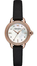 Emporio Armani Mia Mother of Pearl Dial Black Leather Strap Watch for Women - AR11598