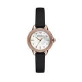 • Emporio Armani's 32mm watch features a white mother of pearl dial, three-hand movement and black leather strap