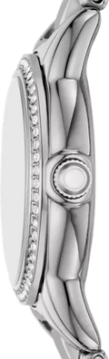 The case of the Emporio Armani STAINLESS STEEL AR11669 is made from high-quality stainless steel, ensuring durability and a polished finish that catches the eye. Measuring a compact 12 mm in diameter, the round case is perfectly proportioned for a feminine wrist, making it an ideal accessory for both casual and formal occasions. The strap, also crafted from stainless steel, features a width of 26 mm and comes in a striking silver color that complements the case beautifully. This harmonious color palette, combined with the pristine white face, creates a watch that radiates elegance and sophistication.