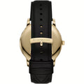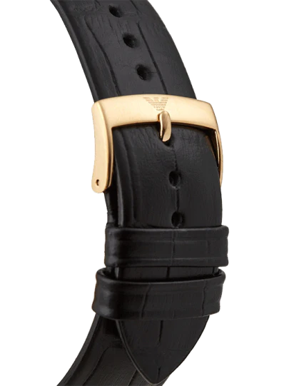 The Emporio Armani AR11601 Minimalist Watch is a perfect blend of elegance and simplicity. Featuring a 41mm gold-tone stainless steel case and a striking green dial, this watch stands out as a refined accessory for any occasion. The black leather band, with a 21mm width, adds a classic touch, while the reliable quartz movement ensures precise timekeeping. Designed with a water resistance of up to 50 meters and equipped with a secure buckle clasp, this timepiece is as practical as it is stylish, making it an ideal choice for the modern gentleman.