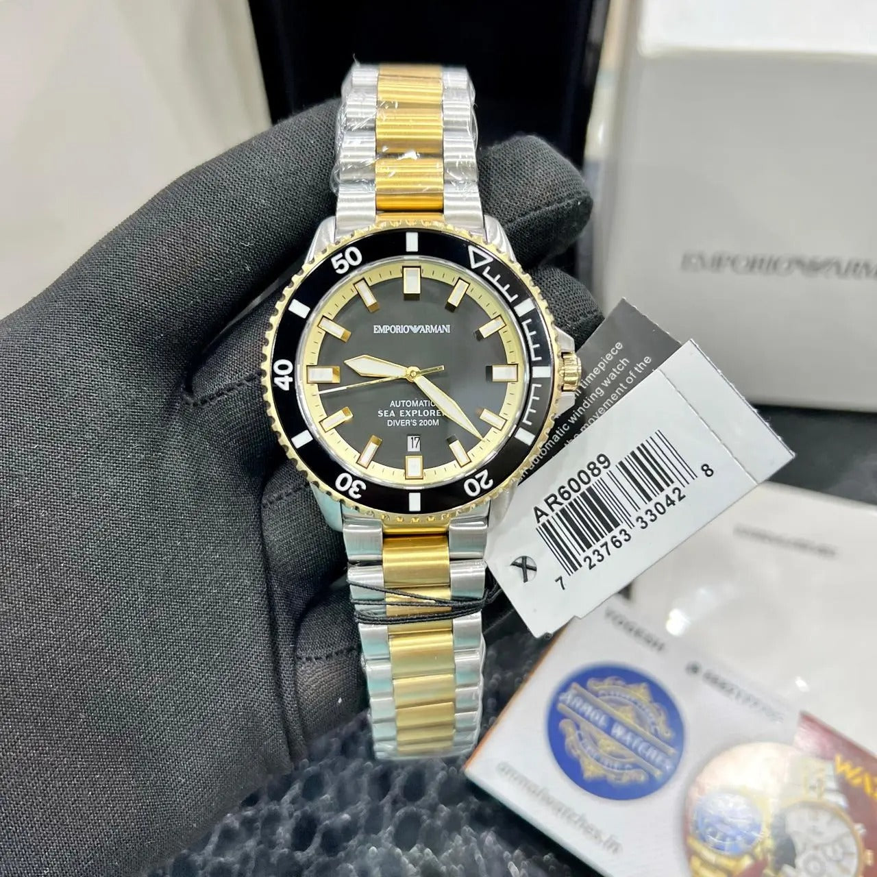 Emporio Armani Sea Explorer Black Dial Two Tone Steel Strap Watch for Men - AR60089Emporio Armani Sea Explorer Black Dial Two Tone Steel Strap Watch for Men - AR60089