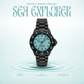 Emporio Armani's Sea Explorer is a 42.5mm watch with a blue Super-LumiNova® dial, as well as hands, indexes and bezel markings, for optimal visibility in dark underwater conditions. The Sea Explorer features an automatic three-hand date movement, sapphire crystal, a screw-down crown, and a plated black stainless steel bracelet. The "Diver's" marking on the dial asserts that this is an ISO 6425 Certified watch with 20 ATM water resistance.