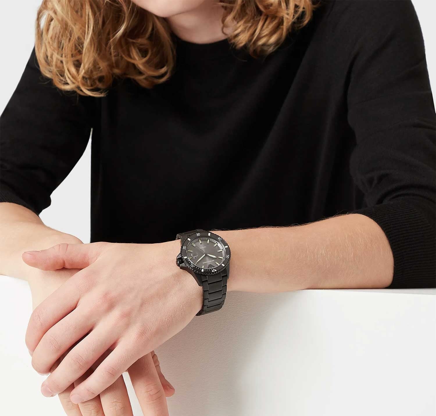 Emporio Armani World Explorer Black Dial Black Steel Strap Watch for Men - AR11398Emporio Armani World Explorer Black Dial Black Steel Strap Watch for Men - AR11398
