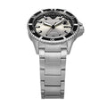 This 42mm World Explorer watch showcases a sophisticated, grey-toned beige sunray dial, a three-hand date movement, and a stainless-steel bracelet. Thoughtful design elements, such as luminous accents on the hands, indexes, and bezel markings, along with a magnifying date window at 3 o'clock, are paired with a sporty design, making this watch a versatile choice for any occasion.