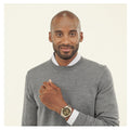This BOSS Grand Prix mens chronograph watch is crafted from stainless steel with a yellow gold plating, and powered by a quartz movement. Presented on a stainless steel bracelet, the watch is finished with a green dial.