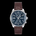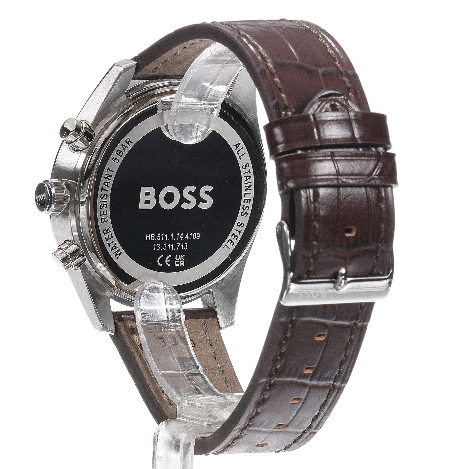 Hugo Boss Skytraveller Chronograph Blue Dial Brown Leather Strap Watch for Men - 1514194