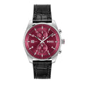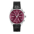 Hugo Boss Skytraveller Chronograph Burgundy Red Dial Black Leather Strap Watch for Men - 1514193