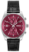 Hugo Boss Skytraveller Chronograph Burgundy Red Dial Black Leather Strap Watch for Men - 1514193Hugo Boss Skytraveller Chronograph Burgundy Red Dial Black Leather Strap Watch for Men - 1514193