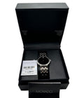 This Movado Classic Quartz watch for men features a sleek black dial and a silver steel strap. Crafted with precision and style, this watch is perfect for any formal occasion. Its reliable quartz movement ensures accurate time-keeping. A must-have accessory for the modern man.