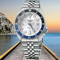 The bi-colour 24-hour bezel is coated in Hardlex, to ensure durability while the GMT hand improves practicality, visibility and legibility. The beads of rice bracelet remains true to the SKX heritage with a five-piece link design that forms a series of small X-shaped patterns. Designed for practical international timekeeping, the GMT hand and high visibility hour markers, along with clear 24-hour bezel, mean multiple time zone calculations can be made at a glance, quickly and easily.