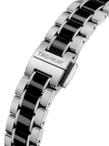 A slim and glamourous women’s watch with black steel and ceramic fixed bezel matched by a two-toned steel and black ceramic bracelet. For confident women who seek superlative craftmanship and eye-catching design.