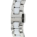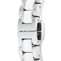 The steel case is trimmed with a fixed bezel of polished steel and white ceramic. The alluring two-toned design continues on the steel bracelet, which has an eye-catching centre row in polished white ceramic.